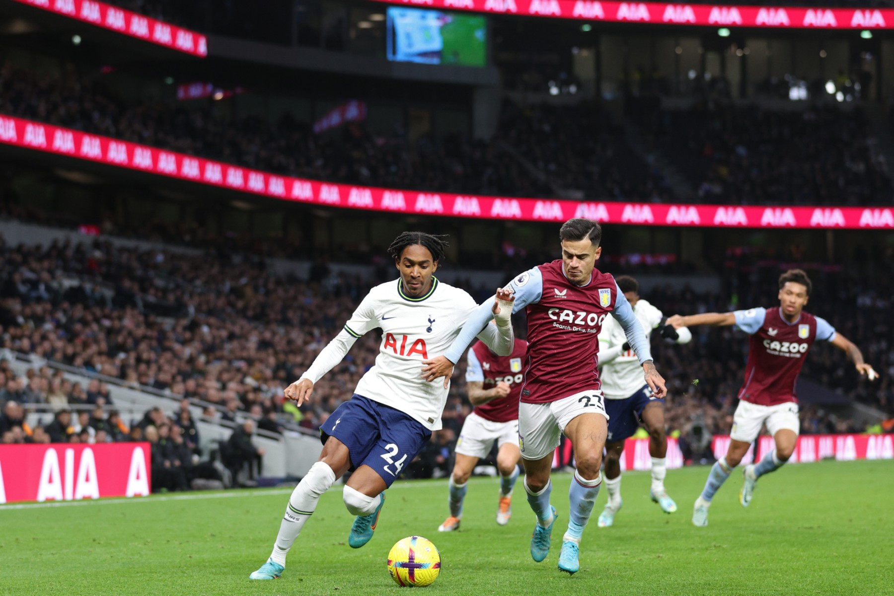El argentino Emiliano Buendía (50) y el brasileño Douglas Luiz (73) asestaron dos mazazos a los Spurs, que habían presionado sin acierto la portería defendida por el sueco Robin Olsen ante la suplencia del recién coronado campeón del mundo Emiliano 'Dibu' Martínez.