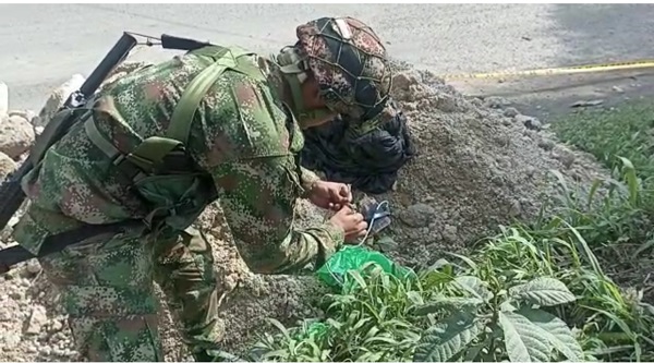 Los hechos se registraron sobre el sector conocido como la Y de San Roque, hasta donde llegaron los soldados del Batallón de Artillería N.º 30, para destruir de manera controlada los explosivos, y así proteger a la comunidad que se desplaza por esta vía del departamento.