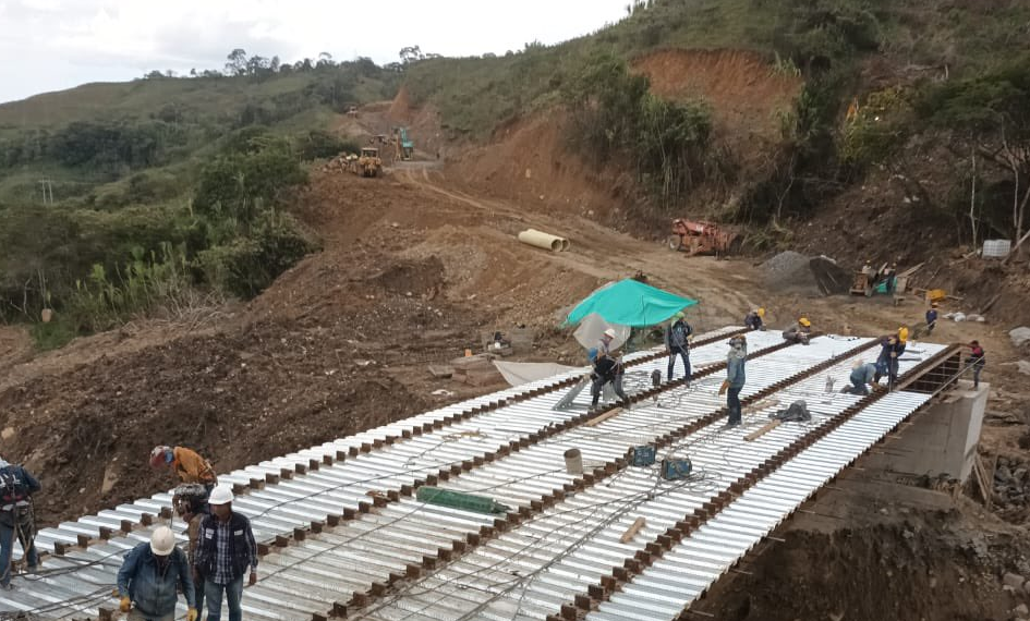 Por su parte, el Instituto Nacional de Vías (Invías) comunicó que pese a las intensas lluvias que pudo avanzar en los trabajos de la adecuación del paso provisional, resaltando la instalación de las 4 vigas metálicas que soportarán el puente metálico de 30 metros y se continúa en la instalación de la formaleta metálica que se requiere para fundir el tablero del puente.